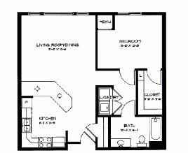 1 bed, 1 bath, 567 sqft