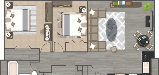 1 bed, 1 bath, 338 sqft