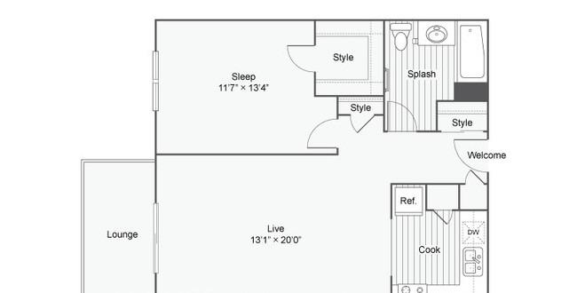 1 bed, 1 bath, 714 sqft