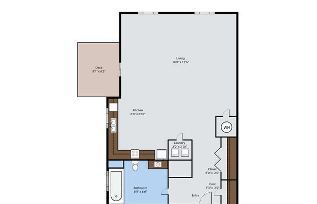 1 bed, 1 bath, 533 sqft