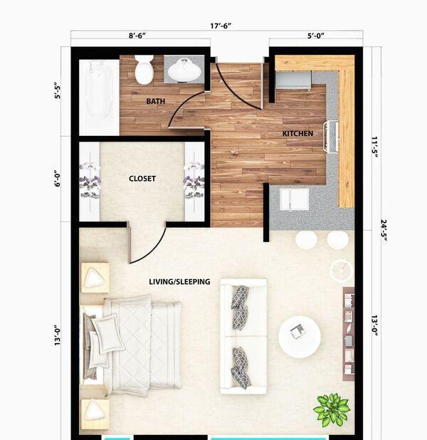 1 bed, 1 bath, 375 sqft