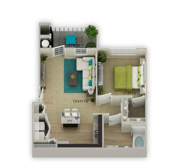 1 bed, 1 bath, 382 sqft