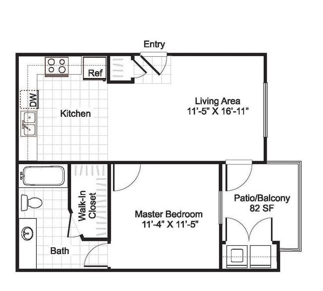 1 bed, 1 bath, 342 sqft